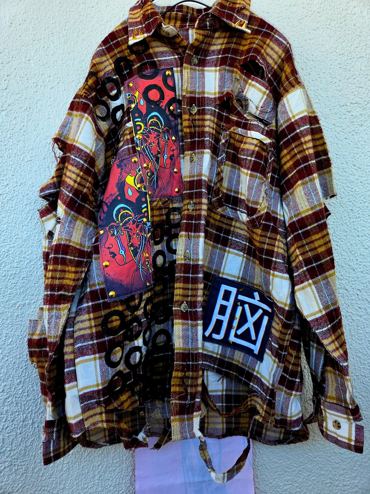 Hard customization is created by adding distressing to hoodies and sewing on fire patterns.