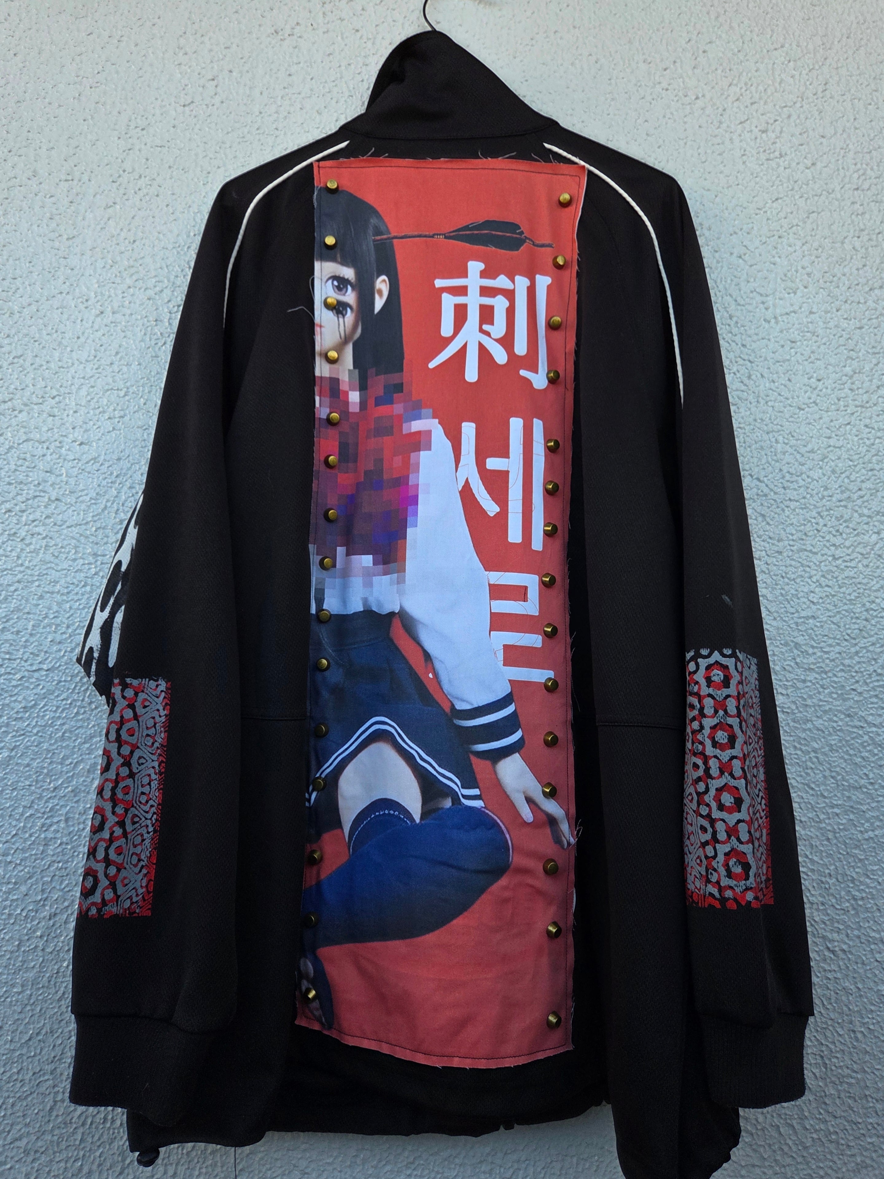 Hard customization is created by adding distressing to hoodies and sewing on fire patterns.