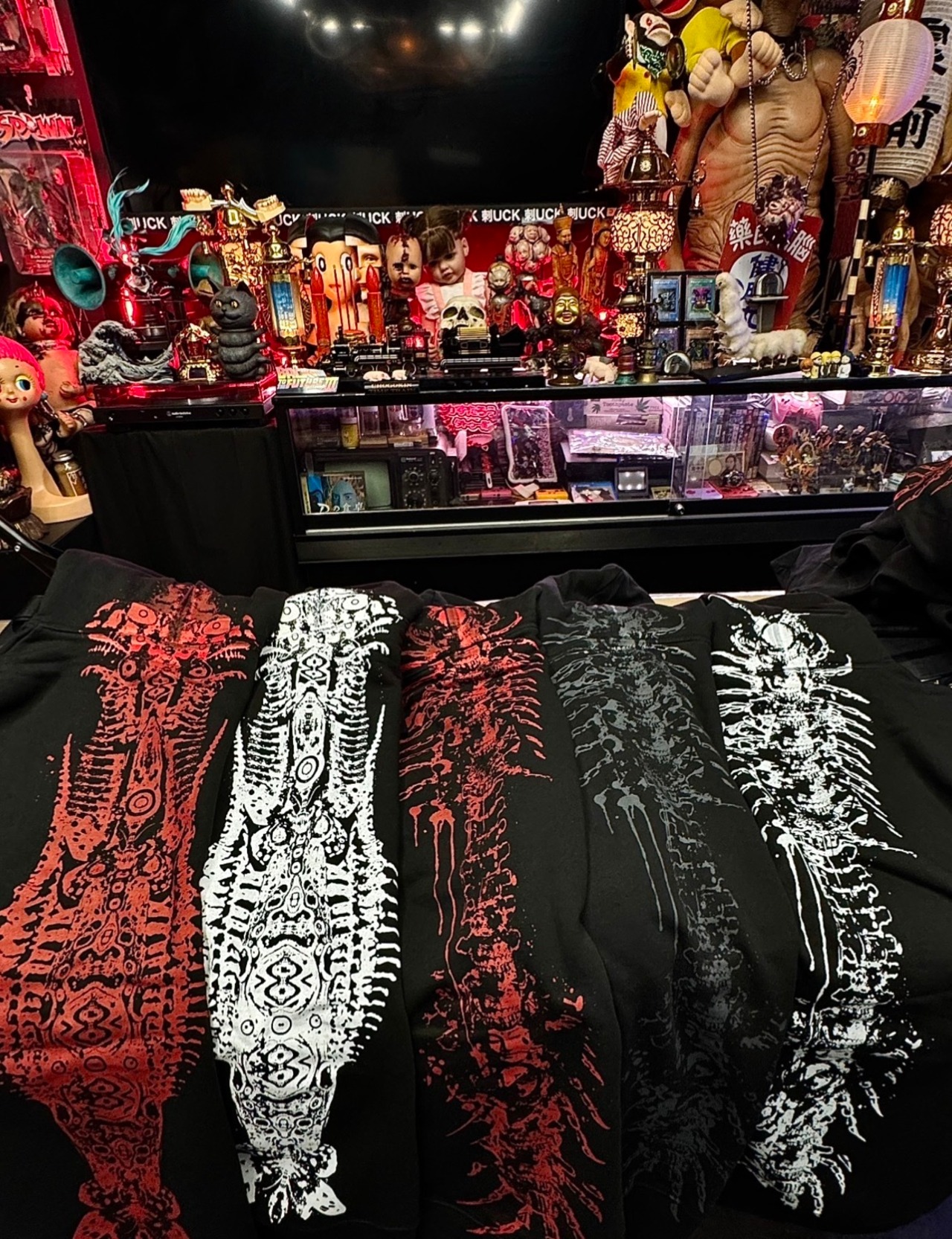80cm越えの特注大型シルクスクリーンで フードから裾まで刷って貰ってます