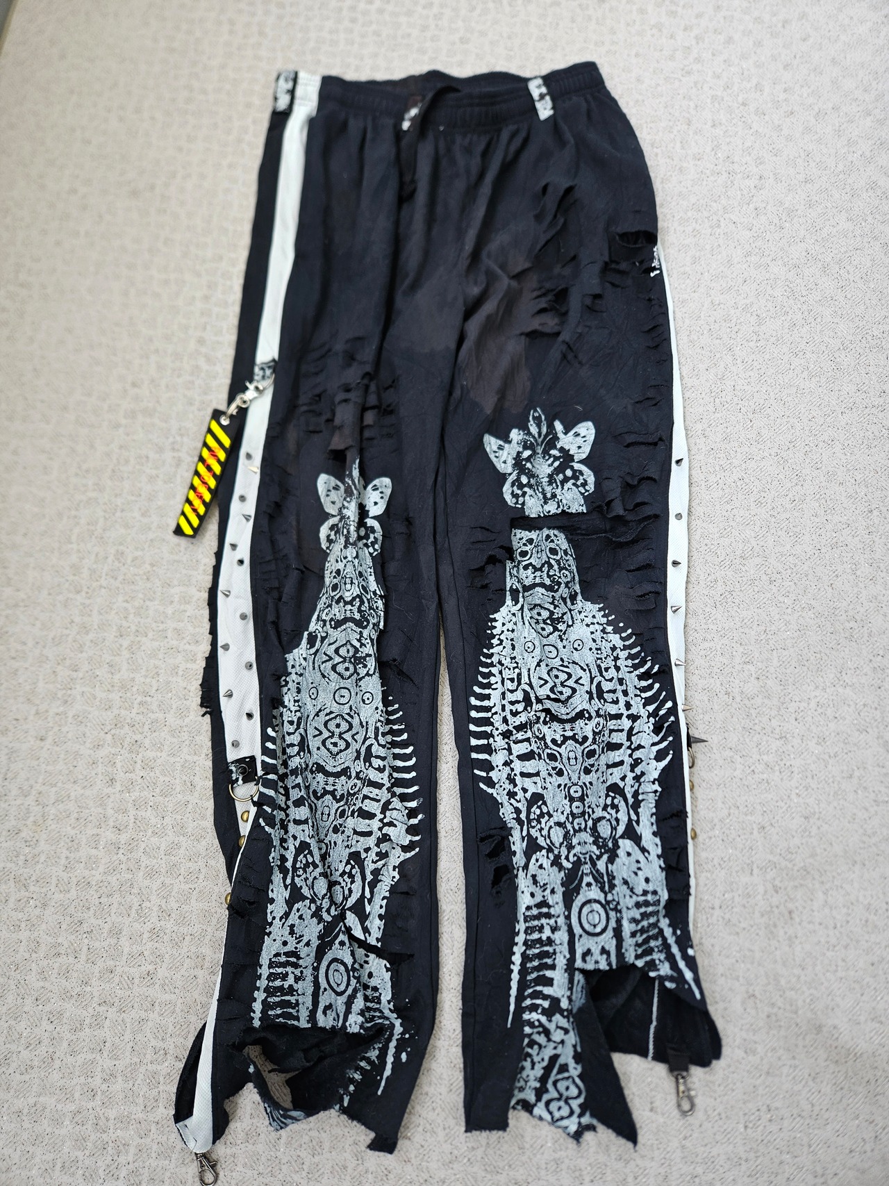 I painstakingly sew it, burn it, tear it, and make it dirty.