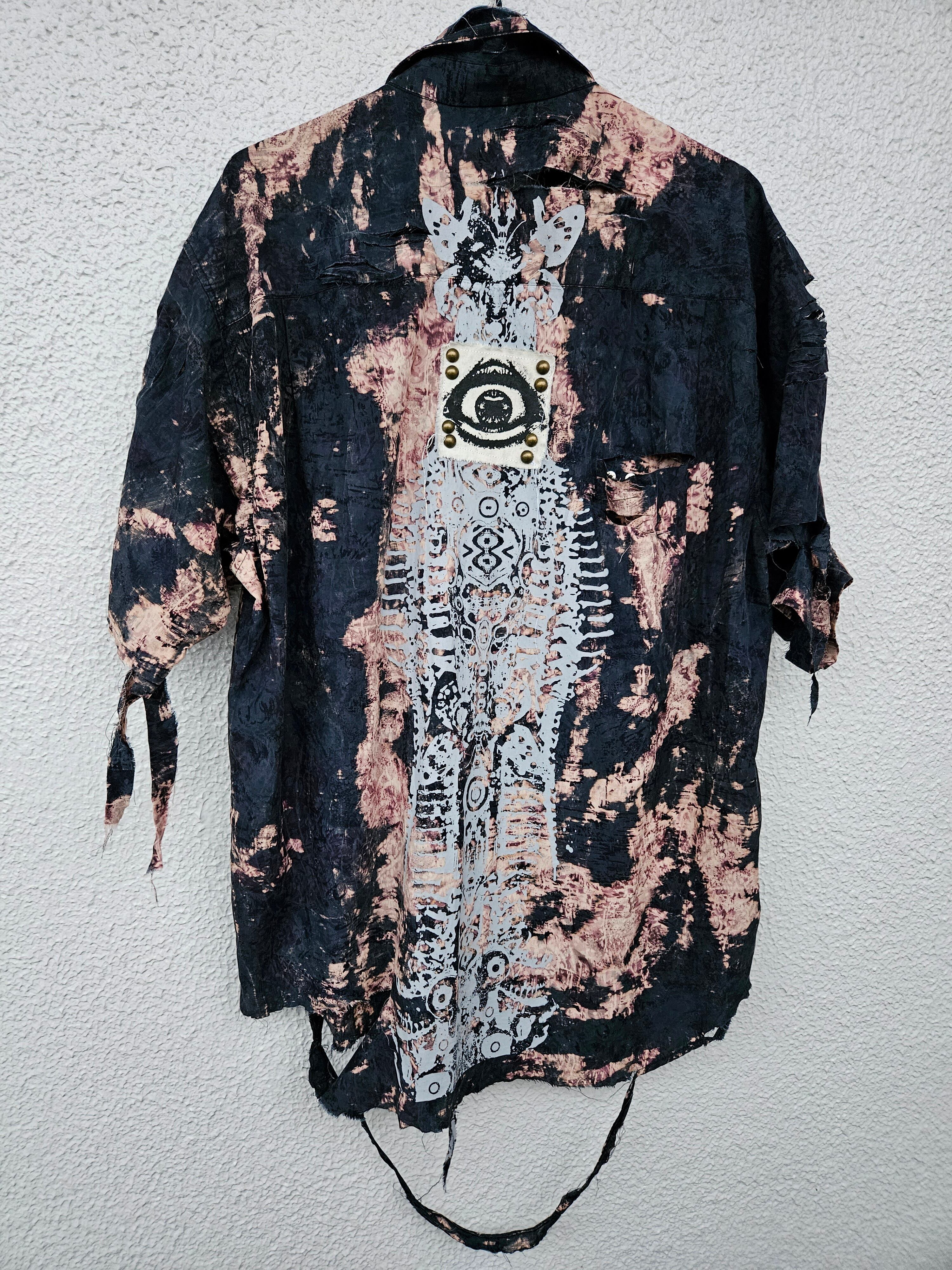 I painstakingly sew it, burn it, tear it, and make it dirty.