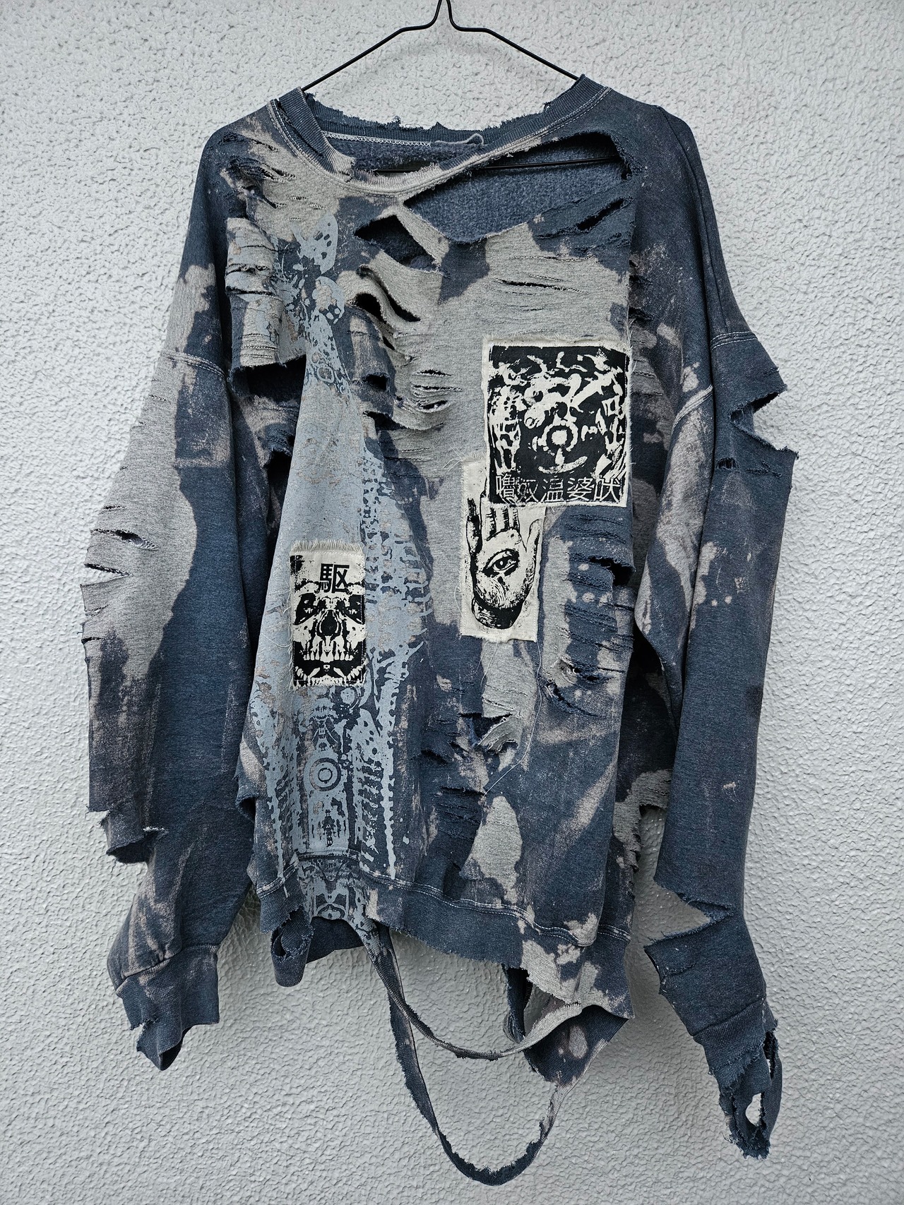 I painstakingly sew it, burn it, tear it, and make it dirty.