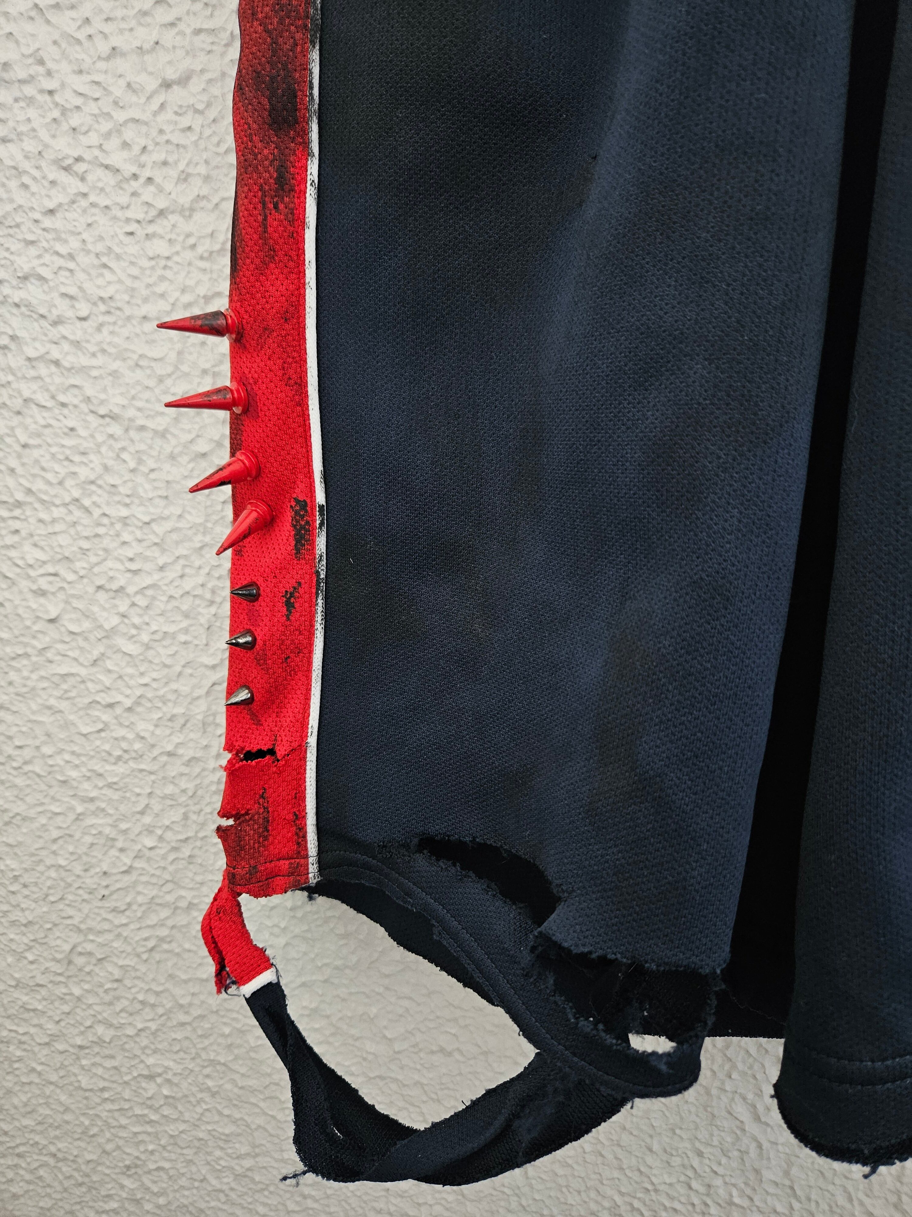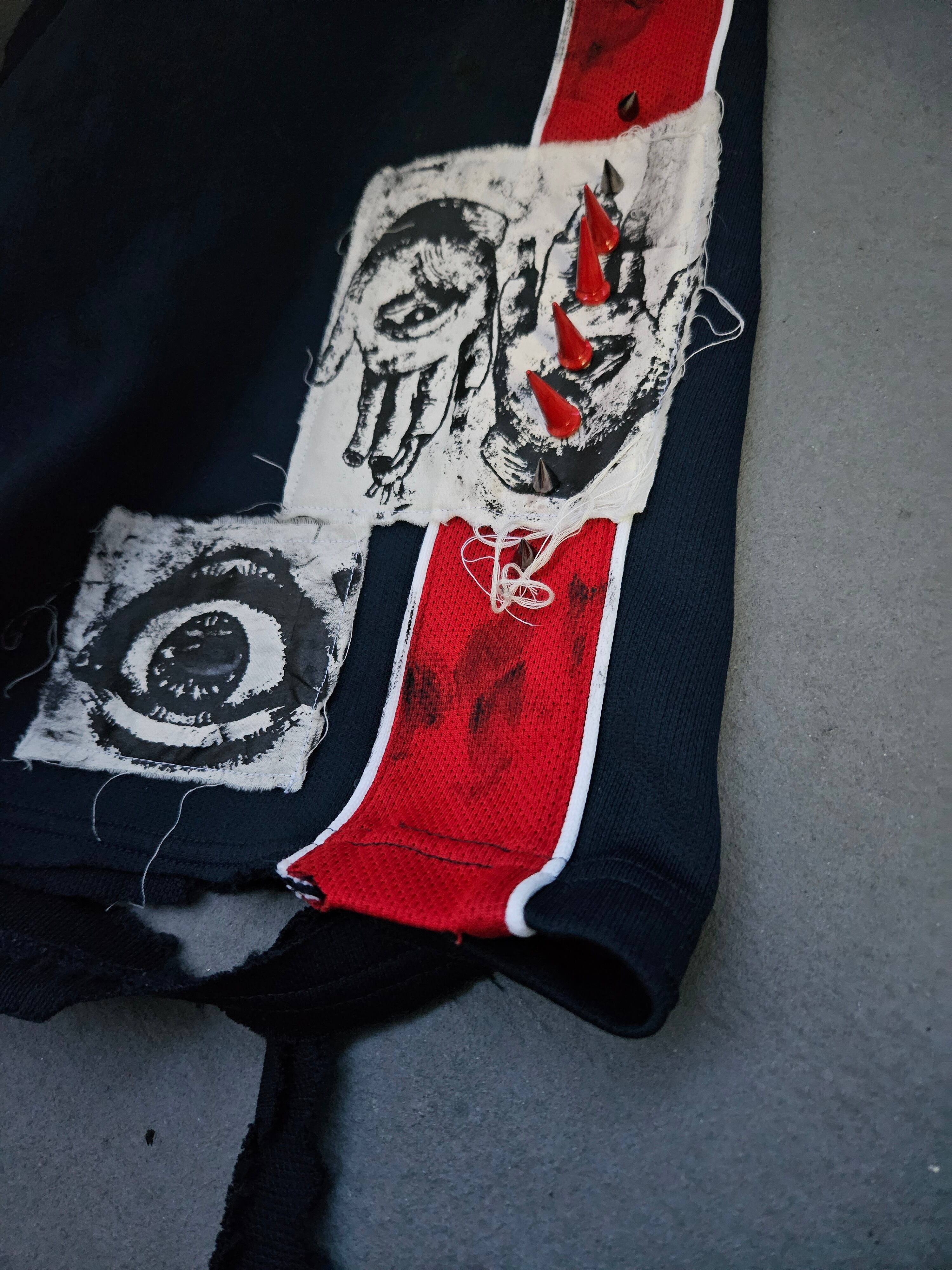 I painstakingly sew it, burn it, tear it, and make it dirty.