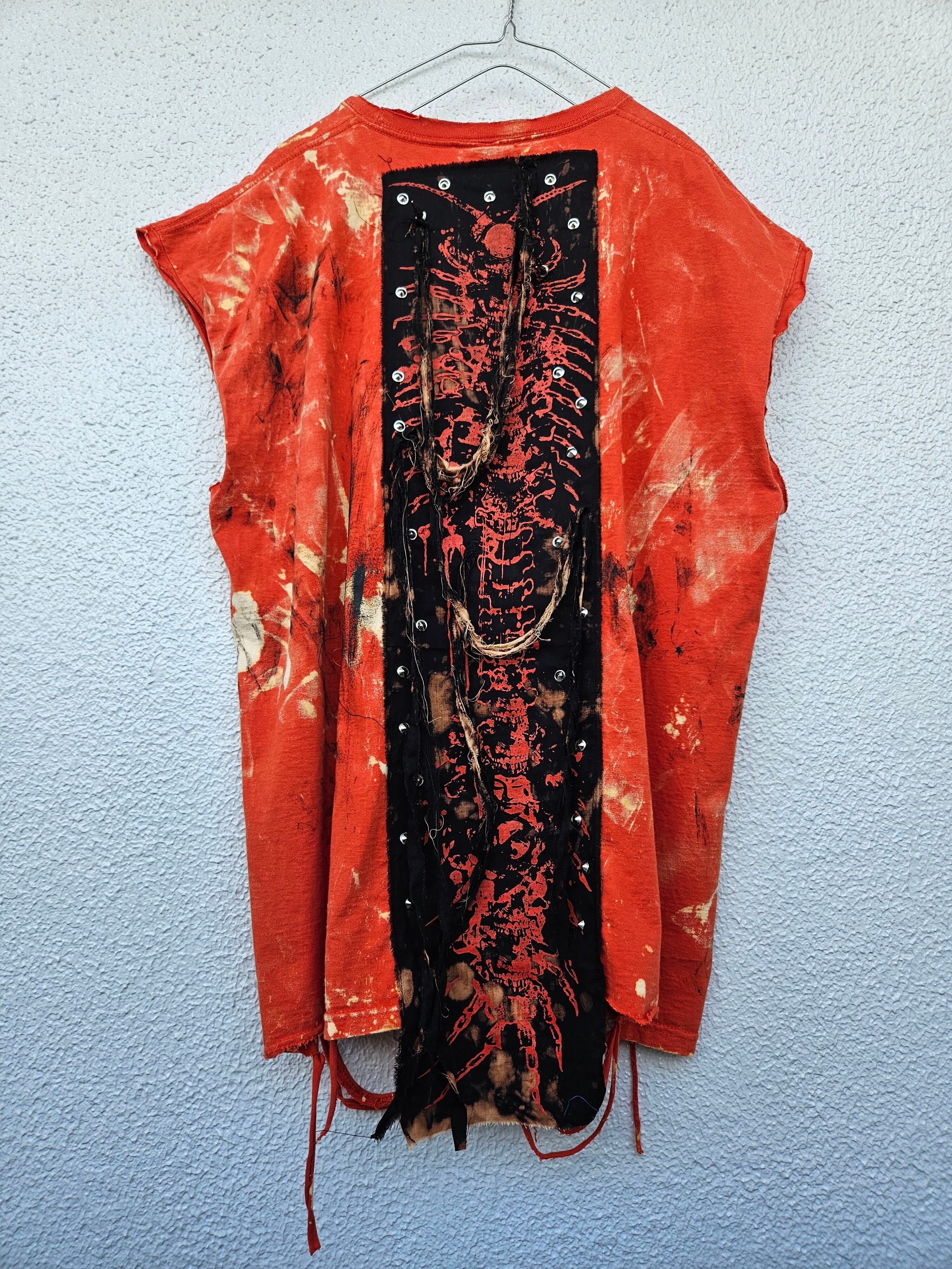 I painstakingly sew it, burn it, tear it, and make it dirty.
